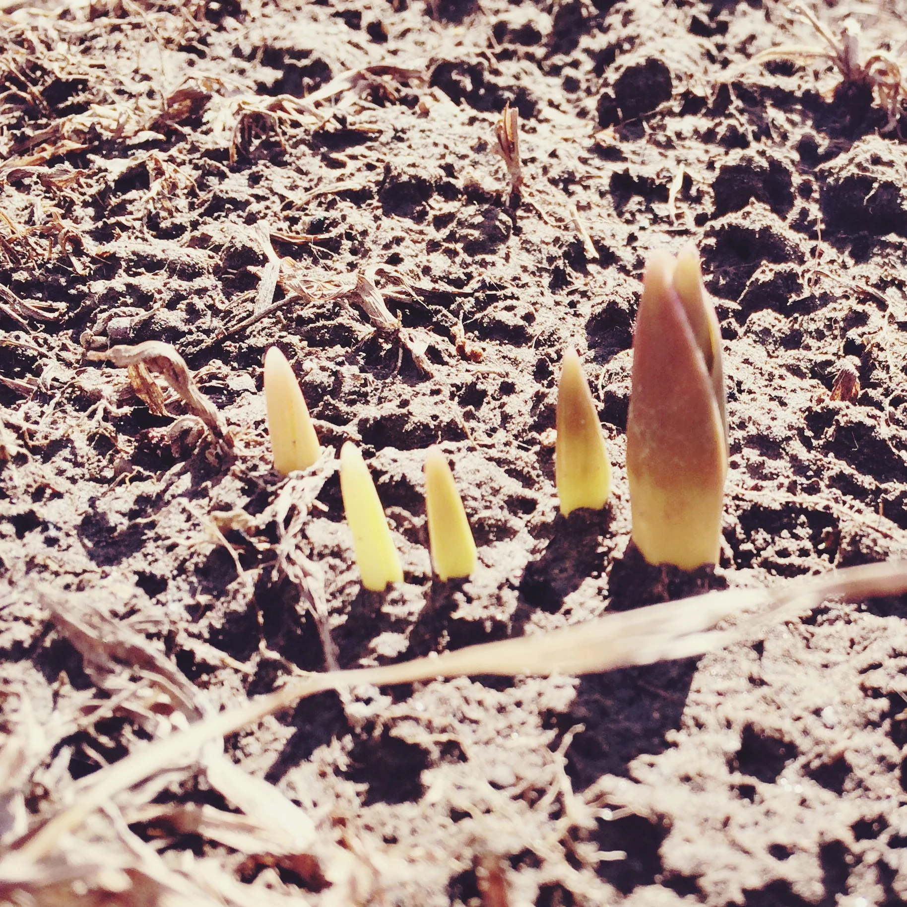Happy Easter! I love a good metaphor, a way to say what is hard to say with something so familiar. Holidays and the garden give me so many! I planted these tulips in fall 2016. Last year was beautiful, but everyone kept saying VT was too wet and they wouldn't come back. I got a little unconventional and put a plastic cover over them to keep them dry last summer, crossed my fingers and let them go. Here they are coming back, and with a bundle of babies for every one I planted. We don't always see what we want to see right away. Sometimes we don't know if what are trying is even working until enough time passes for the work going on underground to complete itself. Where else in our lives do we need to let something "die" in order to see it grow new again? Where else does grace give us more than we hoped for?